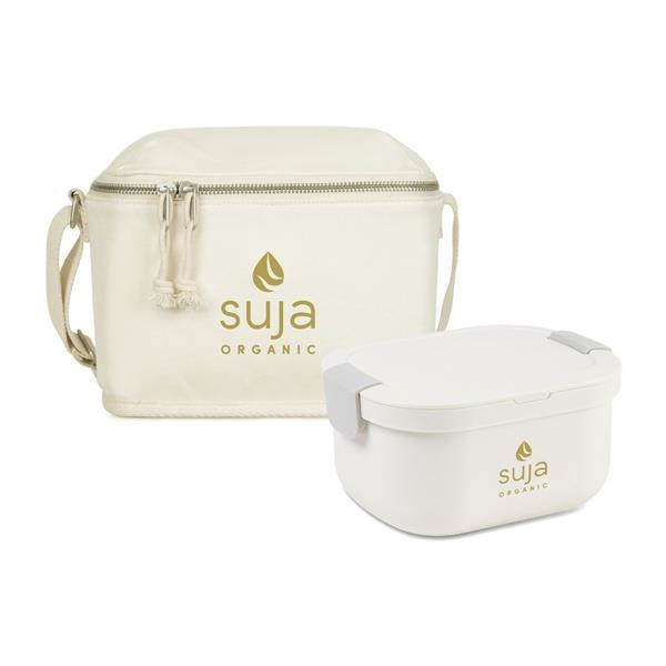 Make a commitment to health with this eco-friendly lunch cooler set that includes the Midori Bamboo Cooler in Natural and the Sarada Bento Lunch Box in White! The lunch box is made of BPA-free plastic materials, includes a complete utensil set, and has a separate dressing/sauce container included. The cooler has a removable PEVA insert, raw metal recyclable hardware, and adjustable cotton webbing shoulder strap, perfect for those on eco-conscious users on–the-go.